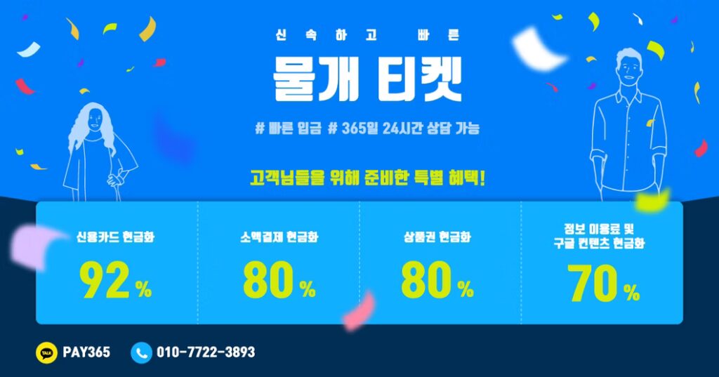 안녕하세요. 물개티켓입니다. 고객님의 급박한 현금 필요를 해결하기 위해, 저희는 24시간 연중무휴로 고객님의 문의를 기다리고 있습니다. 정식 사업자등록증을 보유한 저희 업체는 합법적으로 운영되며, 정보이용료(콘텐츠이용료) 현금화 서비스를 최저 수수료율로 제공하고 있습니다.